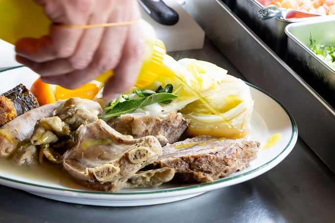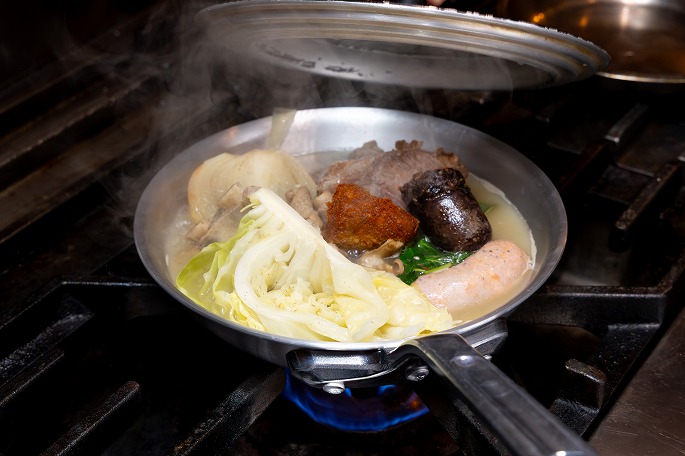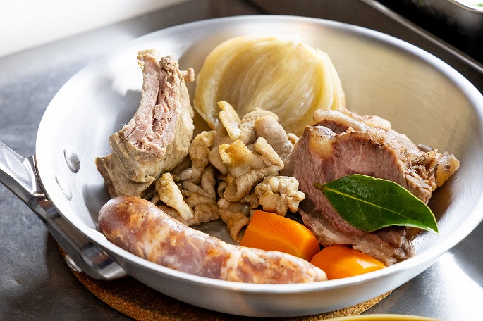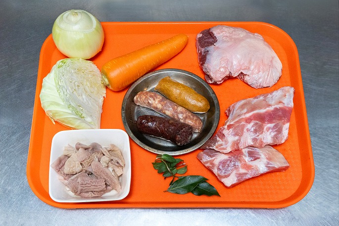ポルトガルの郷土料理のひとつで、ポトフに近い煮込み料理です。特徴的なのは材料の肉のバラエティーで、正肉だけでなくモツやソーセージなどをまとめて野菜とともに煮込みます。