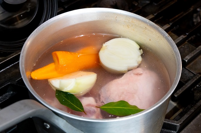 バラエティー豊かな肉を水からゆっくりと炊いていきます