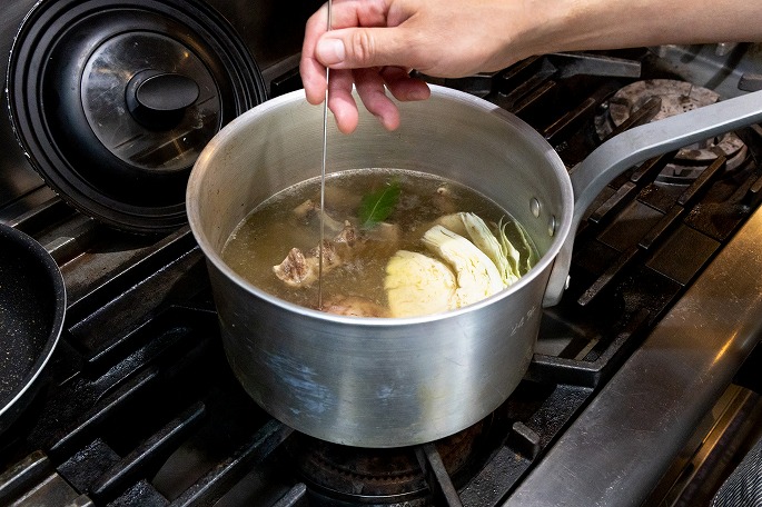 沸騰しない程度の温度を保ち、肉が柔らかくなるまでじっくり待ちます