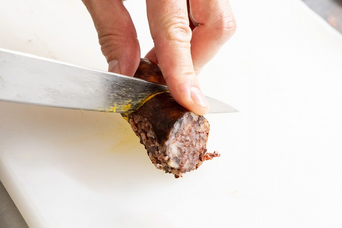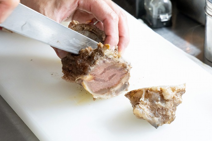 ここまでで使っている調味料は塩のみ。香辛料はもちろんワインなど臭みとりの役割を担う調味料も使っていません。