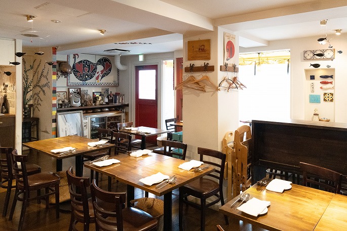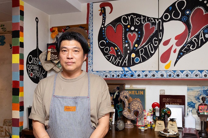 自動車が通れないほどの路地裏にひっそりと佇む店ながら、連日おいしいもの好きな男女で賑わうポルトガル料理店「クリスチアノ」。代表の佐藤幸二さんは、美術好きがこうじてイタリアへ。その後、西はポルトガルから東はタイまで7年間にわたり各国を旅行。旅費をまかなうために各地のレストランで料理人として働きながら各国料理の技術や文化を吸収していった異色の経歴の持ち主です。同店の業態づくりにあたってはポルトガルを訪問。各地のレストランを食べ歩くとともに、食器や装飾品も購入。それらの調度品が本場の空気感を伝えるあしらいとなっています。