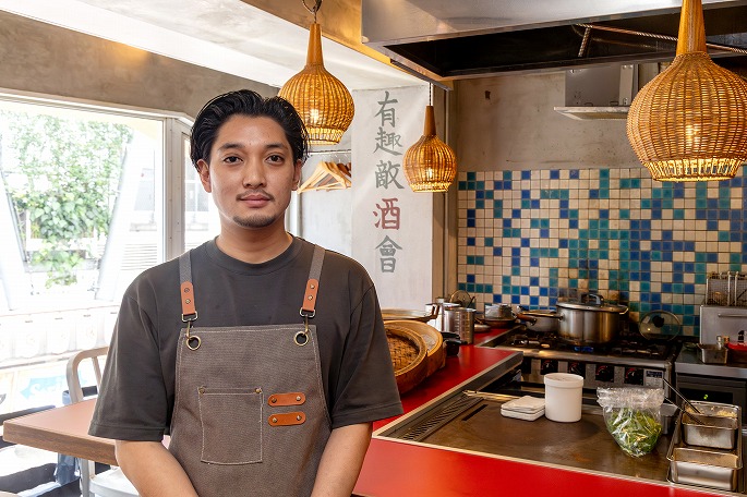 大学時代からバックパッカーとして世界を巡っていたという佐藤さん。「将来は飲食業に関わりたい」という思いを抱きつつ、卒業後は一般企業に就職するも、夢を諦めきれずに退職。さまざまな飲食店で経験を積みながら、合間を縫って海外を訪れ、現地の味と向き合い続けたそう。その中で出会ったのが、シンガポール料理。「率直に、“料理がおいしい!”と思ったんです。その頃には居酒屋スタイルの店をやりたいという構想があり、お酒とも合うシンガポール料理なら形にできる、と心が決まりました」。その後、渋谷の「ロブスター&シャンパン Ebizo」で、現在のオーナー・雨宮光希さんと出会い、意気投合。タッグを組み、現在に至ります。