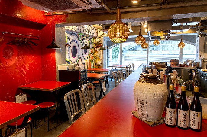 “大人の町中華”をテーマに掲げる同店では、料理に合わせた酒類にも妥協なし。甕出し紹興酒や白酒などの中国酒に加え、ナチュールを含むワインは常時15種ほどを揃え、飲み放題プランも用意しています。「ほかではなかなか味わえない料理を、気軽に楽しんでいただけたら。ハナレは本店よりも広く、テーブルも大きめなのでグループ利用も多いですが、ひとりでふらっと立ち寄られる方も少なくありません」。